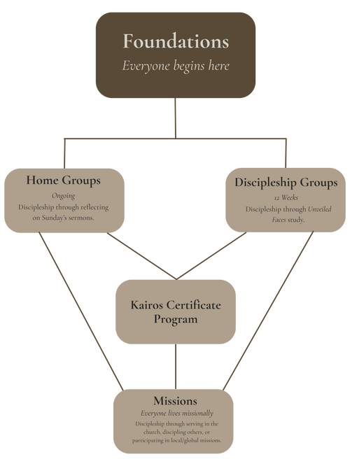 While the discipleship pathway is structured for clarity, it is not rigid. It is built to reflect the truth that real spiritual growth is rarely linear. People come to Jesus at different stages of life, with different histories, and different needs. That is why, although Foundations is the one required starting point, what follows is intentionally flexible.